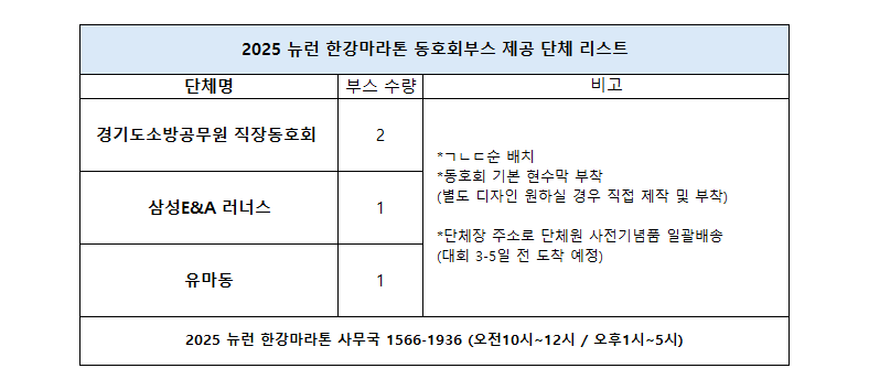 2025 뉴런 한강마라톤 동호회 부스 안내드립니다.