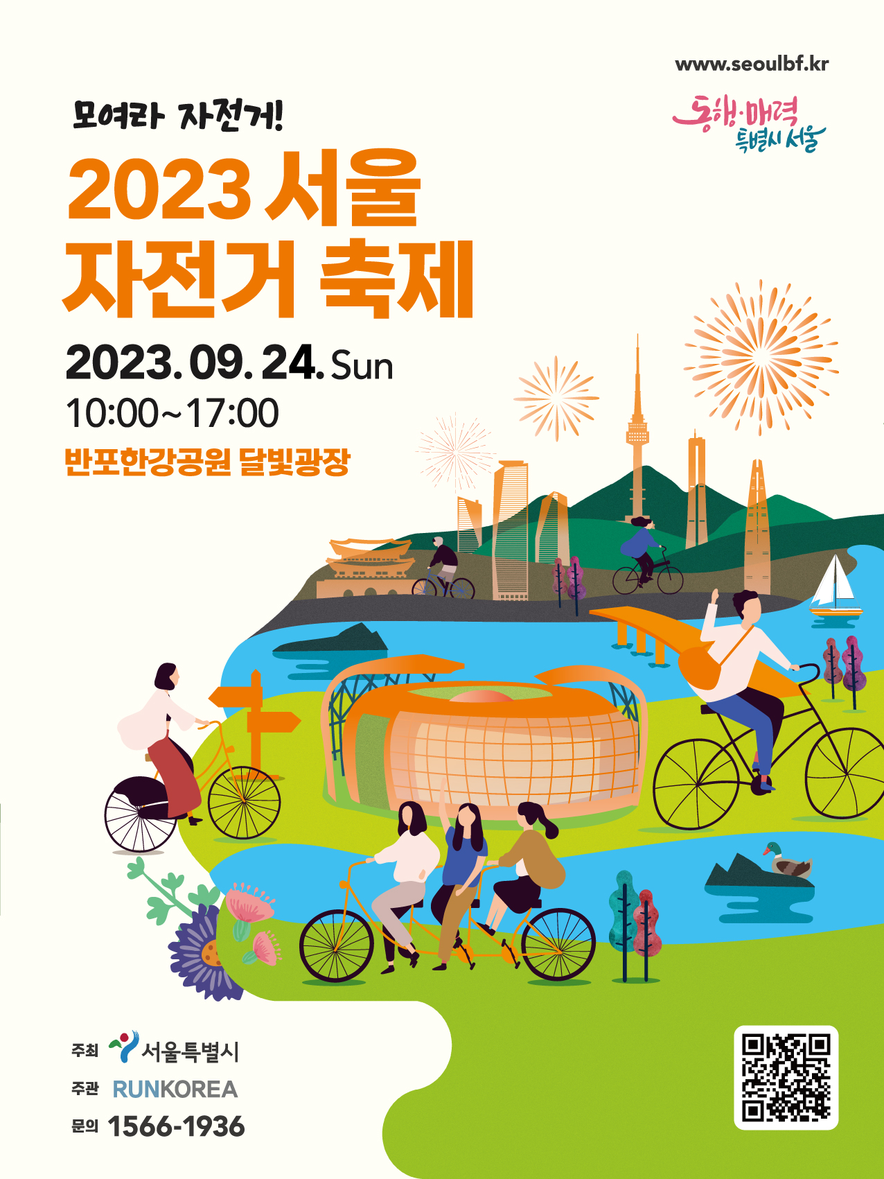 2023 서울자전거축제 (9/24) 페이지 정보 작성자 사무국 댓글 0건 조회 12,703회 작성일 23-04-16 19:31 본문 2023 서울 자전거 축제 * 일시 : 2023년 9월 24일 (10시 ~ 17시) * 장소 : 반포한강공원 달빛광장 * 홈페이지 : www.seoulbf.kr 목록 댓글목록 댓글목록 등록된 댓글이 없습니다.