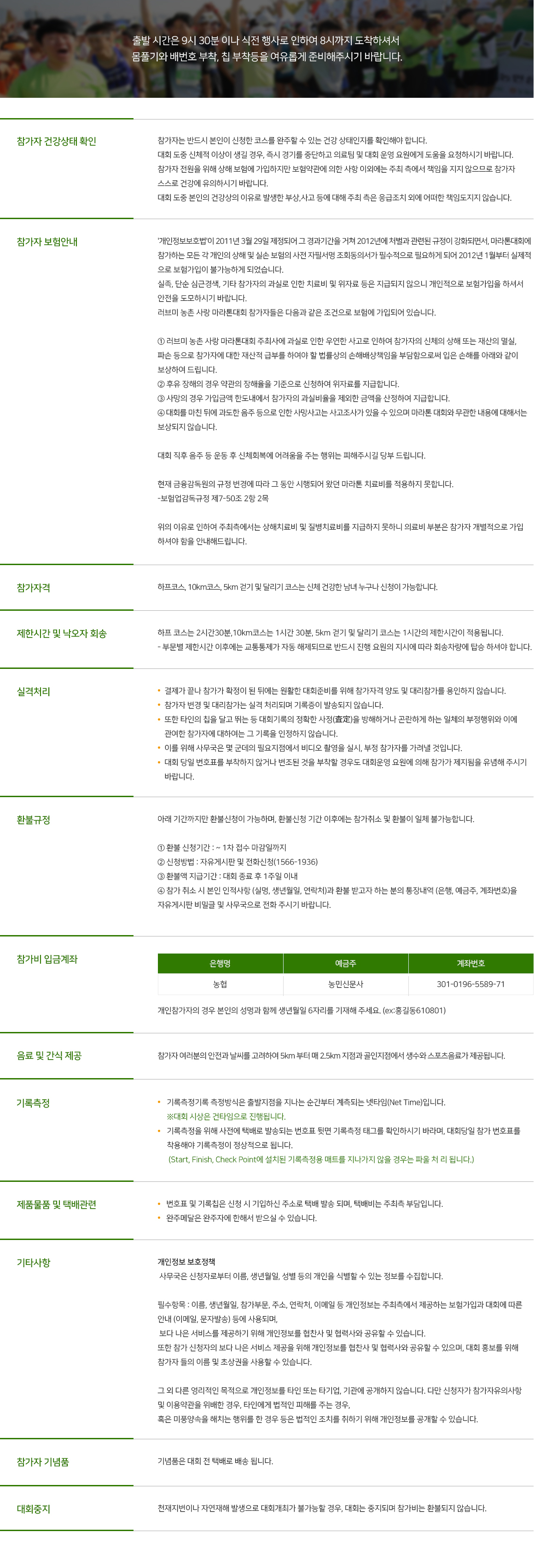 농촌사랑 마라톤 대회 참가자 유의사항입니다.