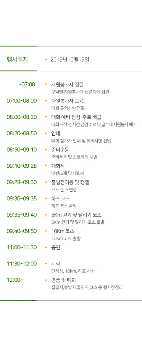 농촌사랑 마라톤 대회 행사일정 안내입니다.