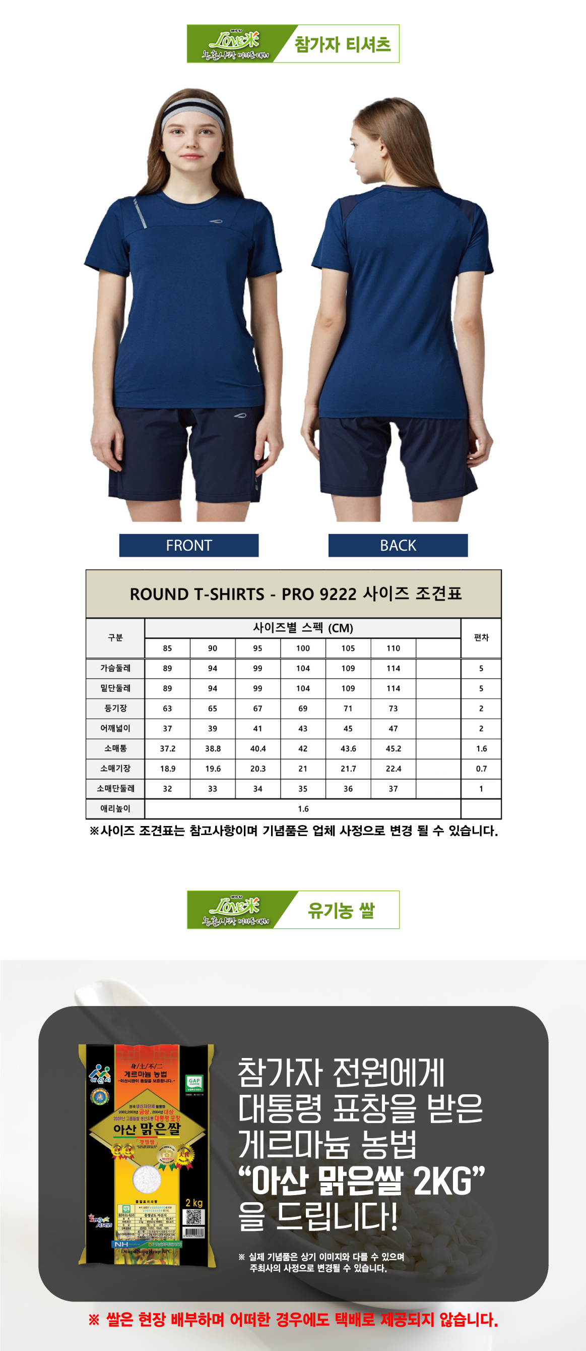 농촌사랑 마라톤 대회 기념품 안내입니다.