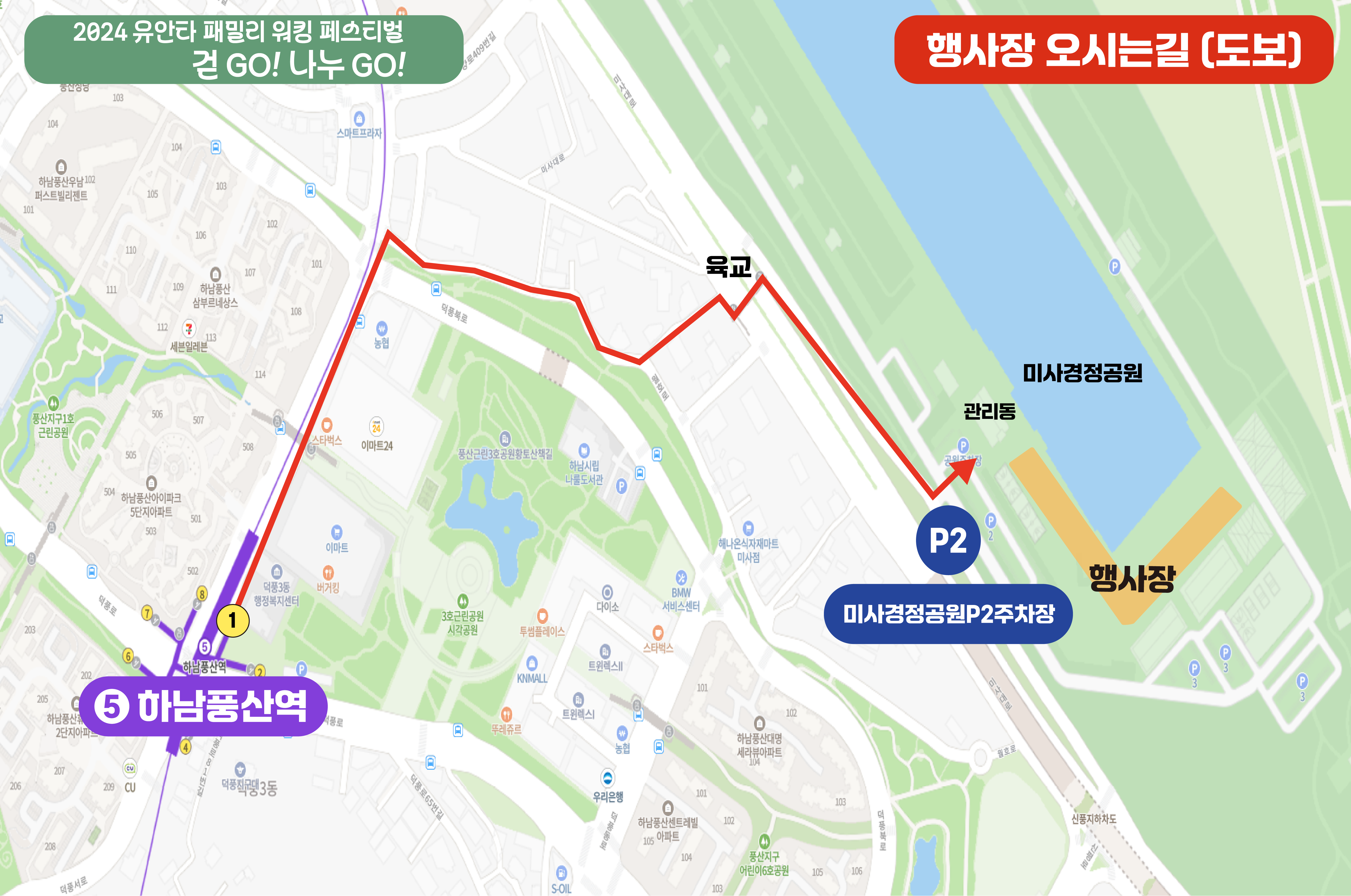 TMAP 기준 도착지 < 미사경정공원P2 주차장 > 검색 ※ 대회 당일 주차장은 미사경정공원 P1, P8 주차장 이용 부탁드립니다. ※ 주차비 : 10분당 300원 |
