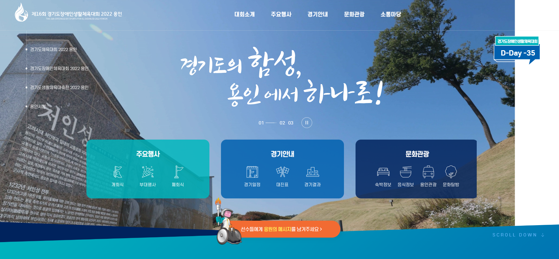 제 16회 경기도장애인생활체육대회 2022 용인 (10/7~10/8) 페이지 정보 작성자 사무국 댓글 0건 조회 11,087회 작성일 22-11-11 09:25 본문 제 16회 경기도장애인생활체육대회 2022 용인 관련링크 http://www.2022yisports.kr 6829회 연결 목록 댓글목록 댓글목록 등록된 댓글이 없습니다.