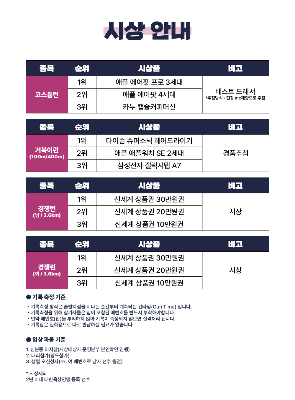 대회 시상 안내